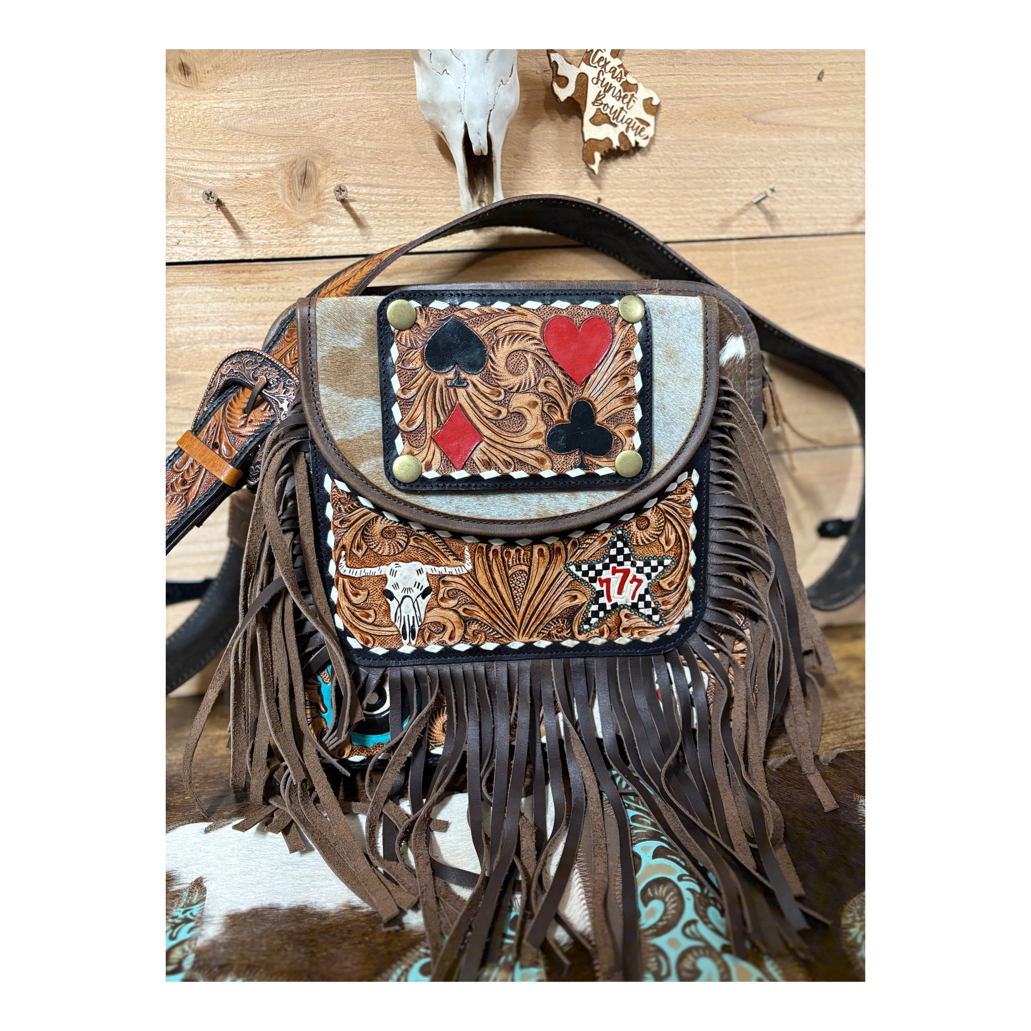 Leather tooled/cowhide ace 3 in one purse